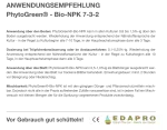 <td>PhytoGreen®-Bio-NPK can be applied at a concentration of 0.8 to 1.5% to all crops via the soil. Repeat applications according to the nutrient requirements of the crop – usually every 7-10 days at the beginning of the growing season, and then every 3 days during the main growth phase.</td>