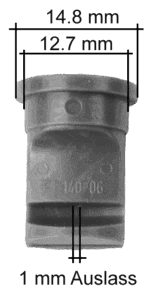 Bitte beachten Sie, dass die FT-140-06 Düse rund ist. Falls Sie derzeit eine andere Düsenform verwenden, muss auf eine runde Bajonett-Mutter gewechselt werden. Diese finden Sie hier: